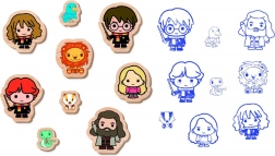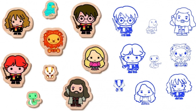 - 9 tvarovaných drevených pečiatok s obľúbenými motívmi HARRY POTTER pre nekonečné tvorenie.