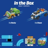 S autíčkami Chase a Rocky sa deti vydajú na farebný okruh s točiacimi sa vrtuľami a tematikou PAW Patrol pre ešte väčšiu zábavu.