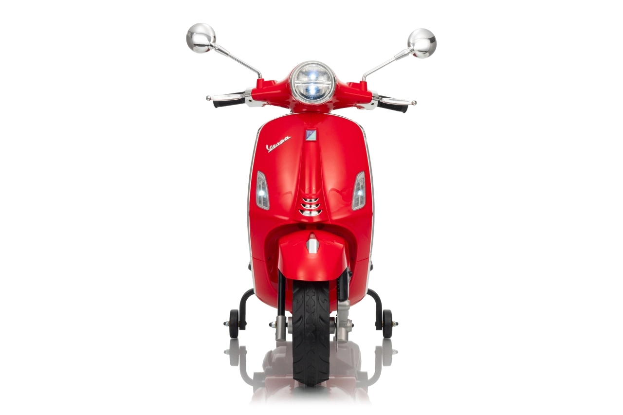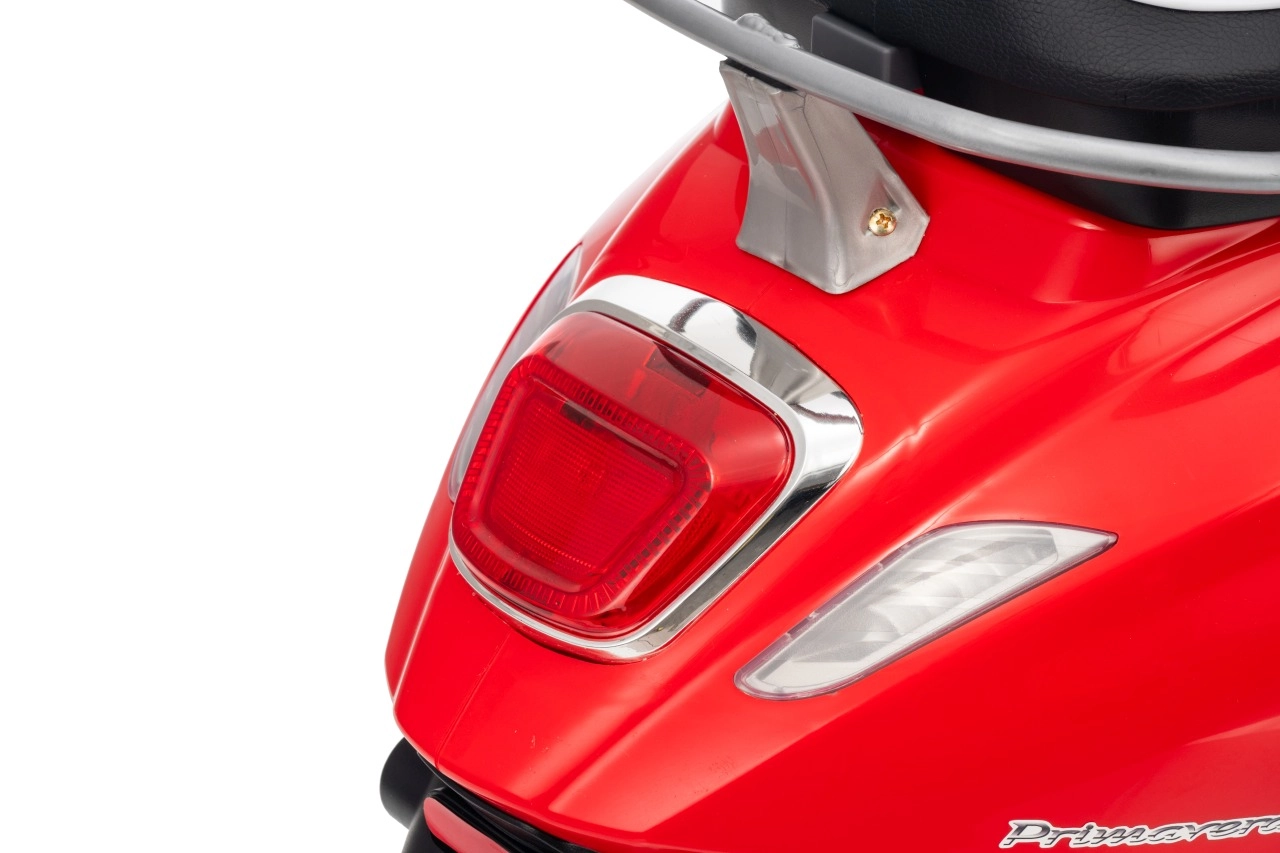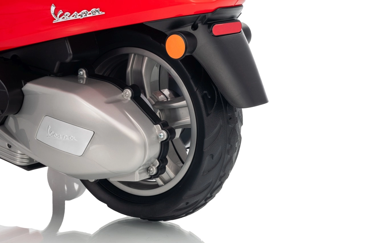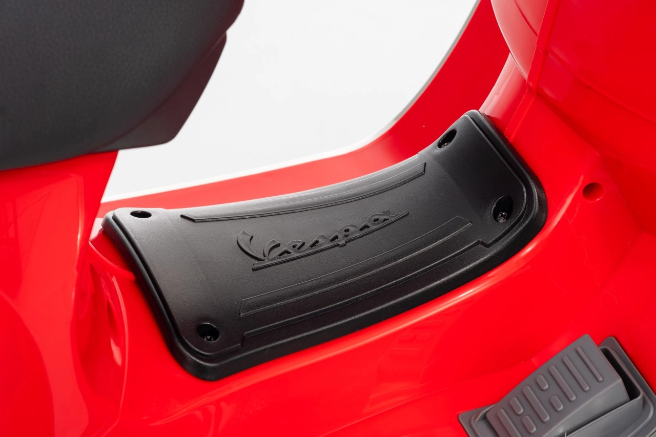 Detský skúter VESPA ROMA v červenej farbe prináša autentický zážitok z jazdy v bezpečnom prevedení pre deti. Vďaka plynulému rozjazdu, jazde vpred aj vzad a kvalitným EVA kolesám je jazda komfortná a tichá. Praktické LED svetlá zvyšujú viditeľnosť a dodávajú vozidielku realistický vzhľad.