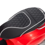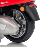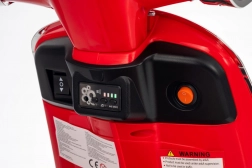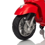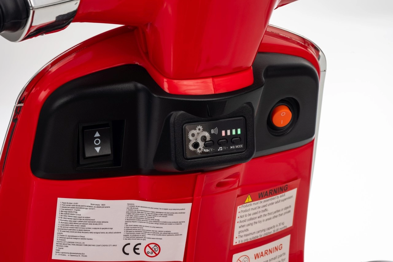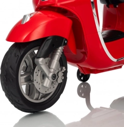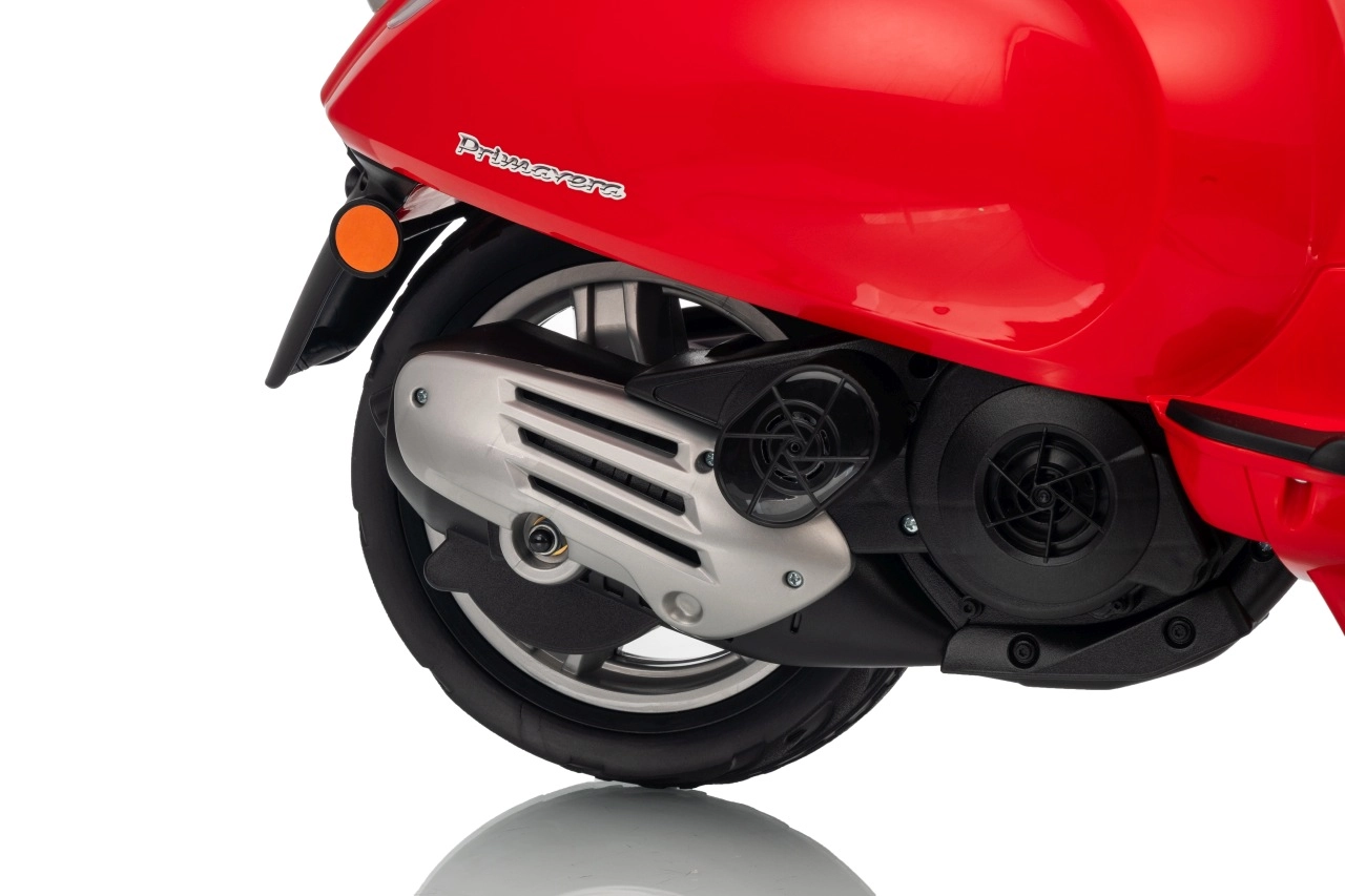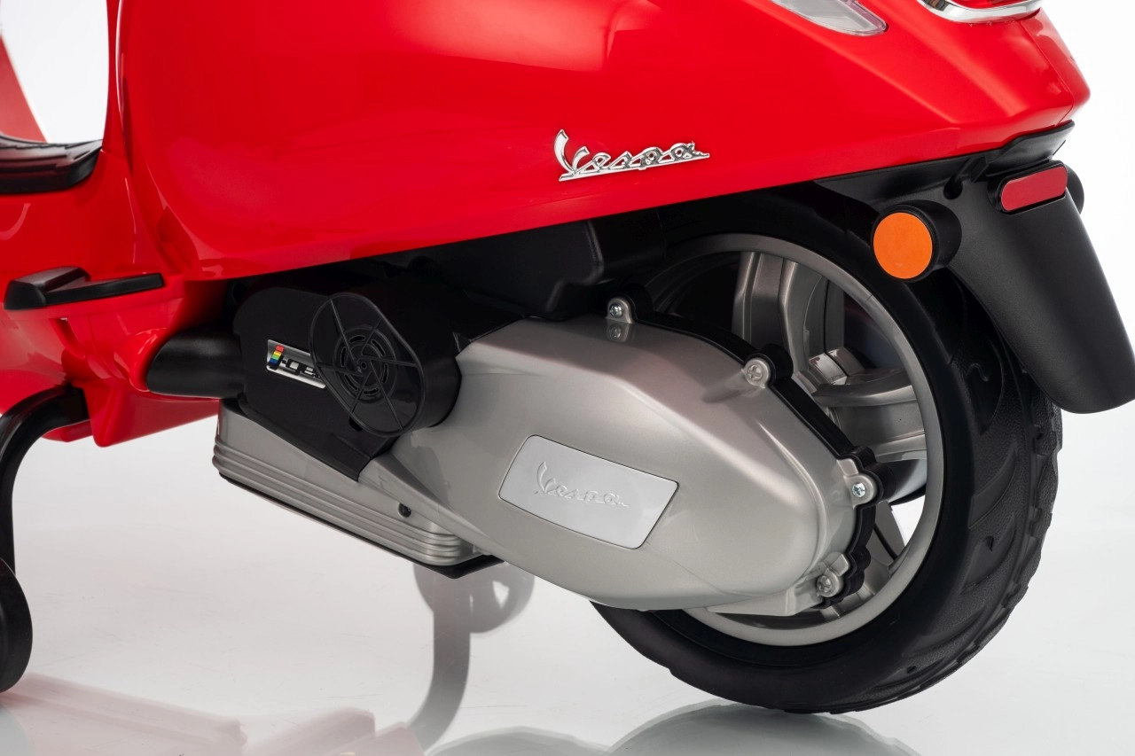 Detský skúter VESPA ROMA v červenej farbe prináša autentický zážitok z jazdy v bezpečnom prevedení pre deti. Vďaka plynulému rozjazdu, jazde vpred aj vzad a kvalitným EVA kolesám je jazda komfortná a tichá. Praktické LED svetlá zvyšujú viditeľnosť a dodávajú vozidielku realistický vzhľad.