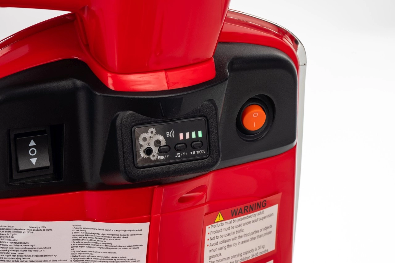 Malí jazdci si užijú zábavu s integrovaným audio panelom – prehrávajte obľúbené pesničky cez Bluetooth, MP3 či AUX. Na riadidlách nechýbajú zvukové tlačidlá a klaksón, sedlo z ekokože zaistí pohodlie aj pri dlhšej jazde. Indikátor nabitia batérie vás navyše udrží v obraze, kedy je čas dobiť.