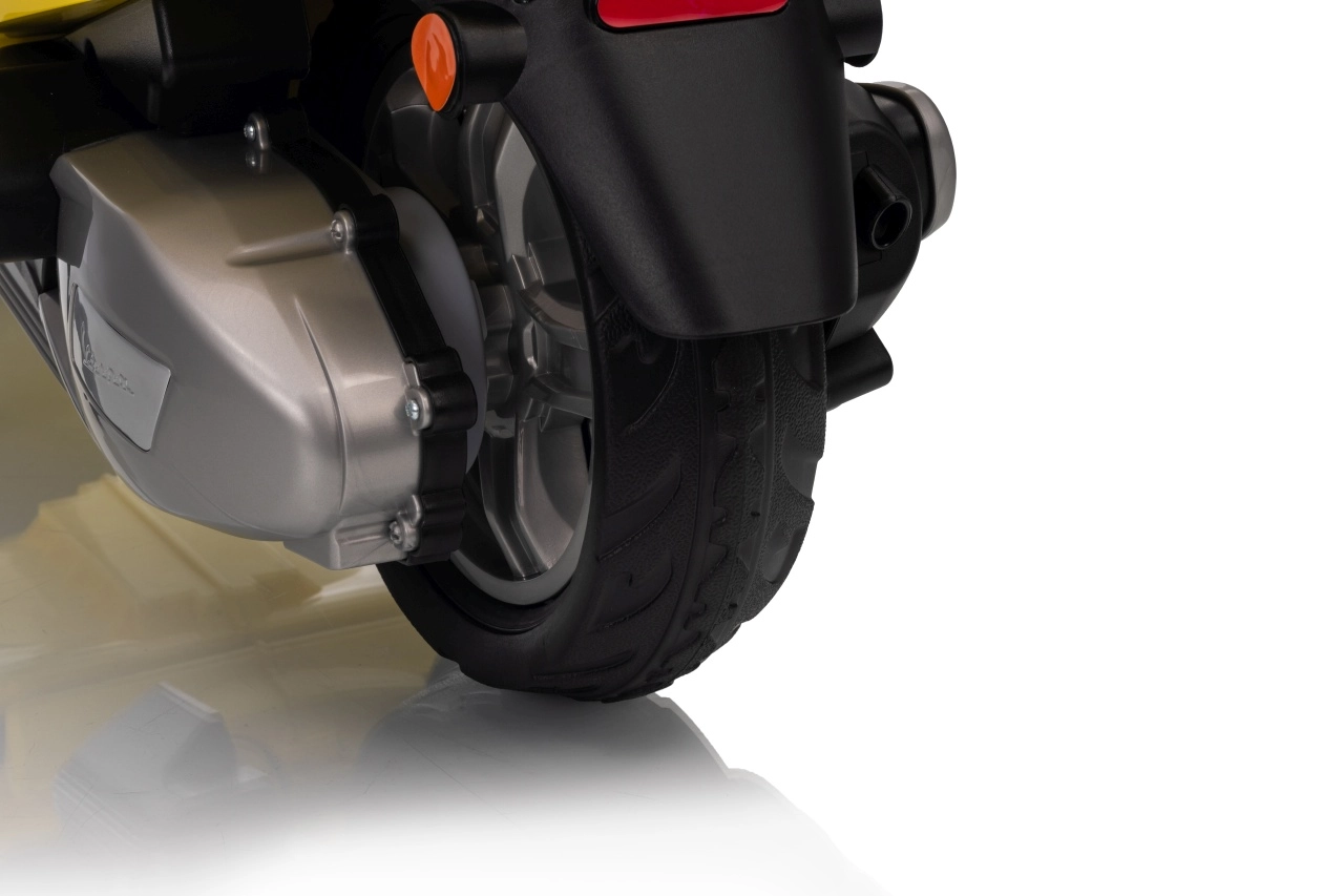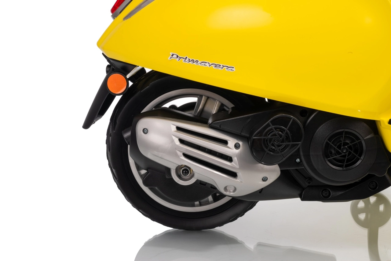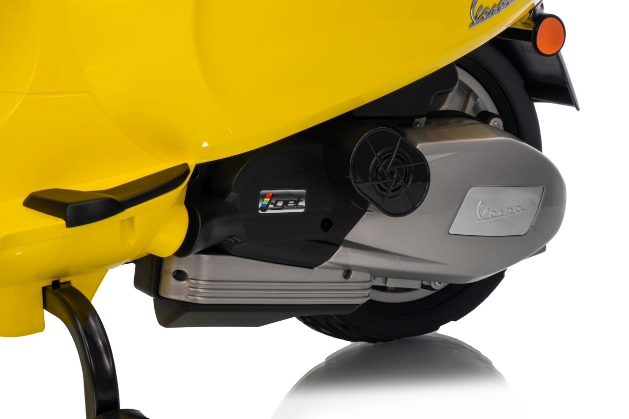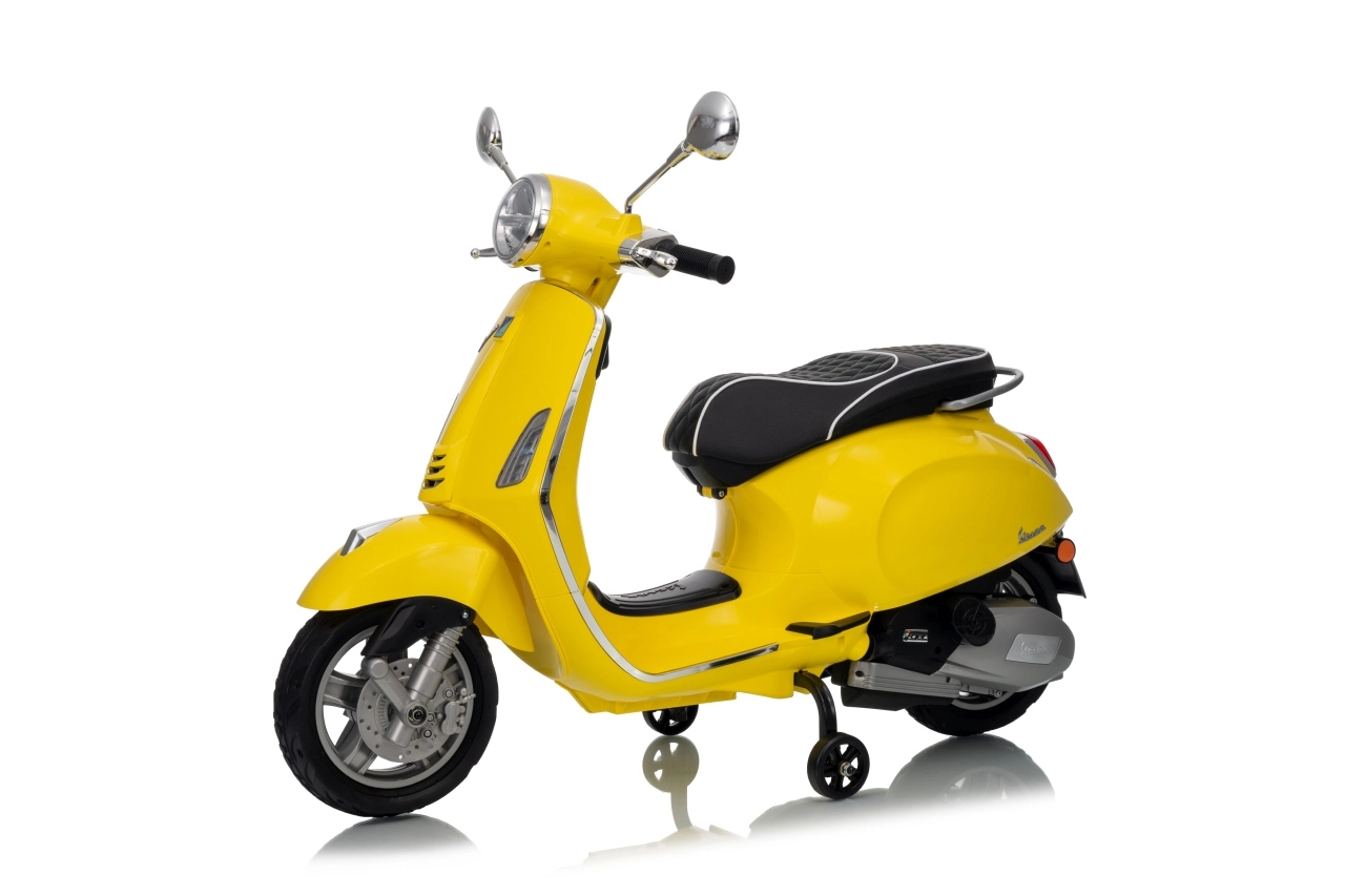 Štýlový detský elektrický skúter VESPA ROMA v žiarivej žltej farbe ponúkne deťom bezpečnú zábavu a prvé jazdné zážitky. Vďaka dvom motorom 2×35 W, baterke 12 V 7 Ah, mäkkým EVA kolesám a plynulému rozjazdu je jazda pohodlná a stabilná. Nechýbajú LED svetlá vpredu aj vzadu, audio panel s MP3/Bluetooth/AUX, ukazovateľ nabitia a pohodlné sedlo z ekokože. Skvelá voľba pre malých jazdcov.