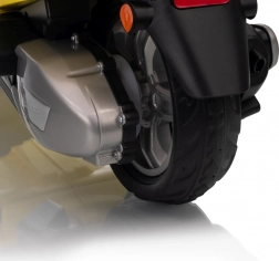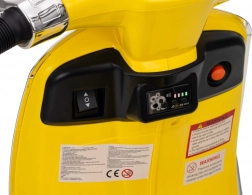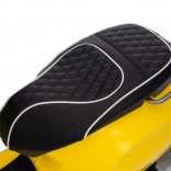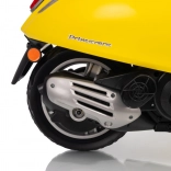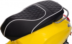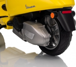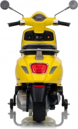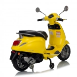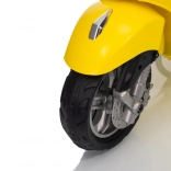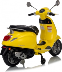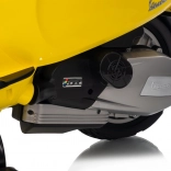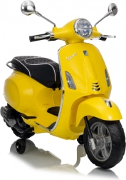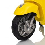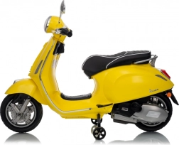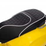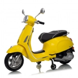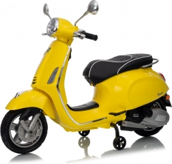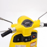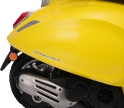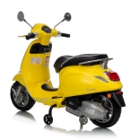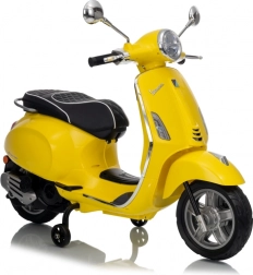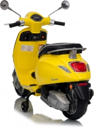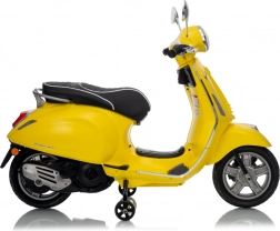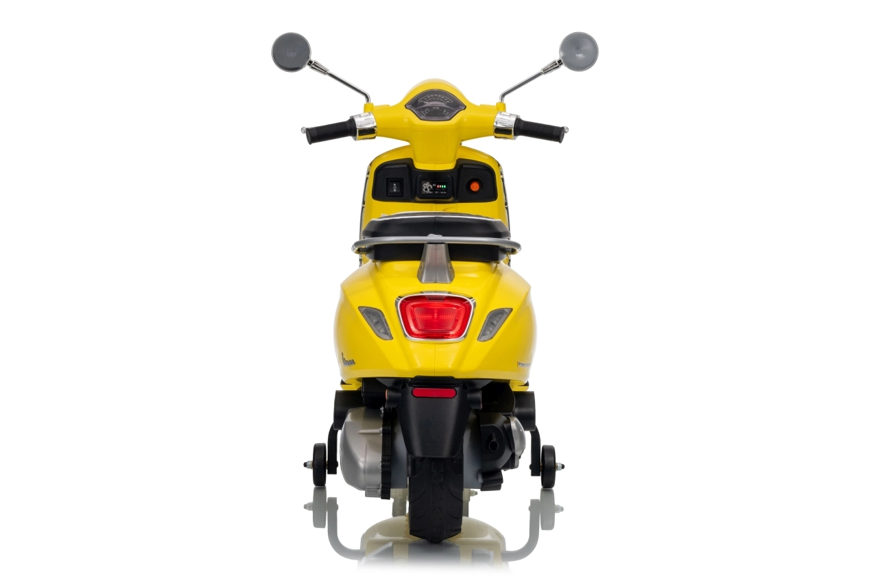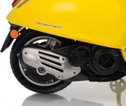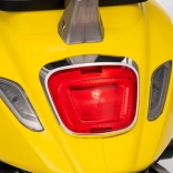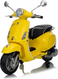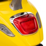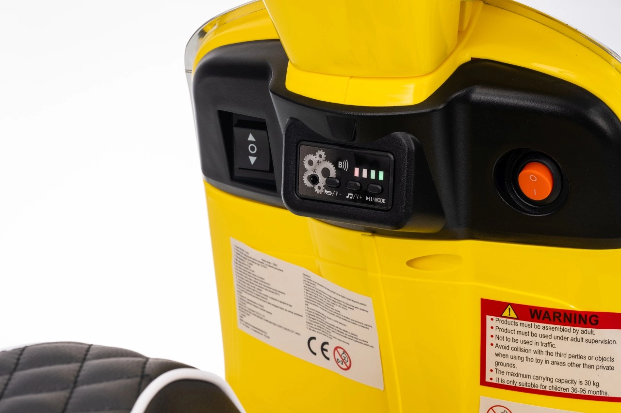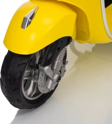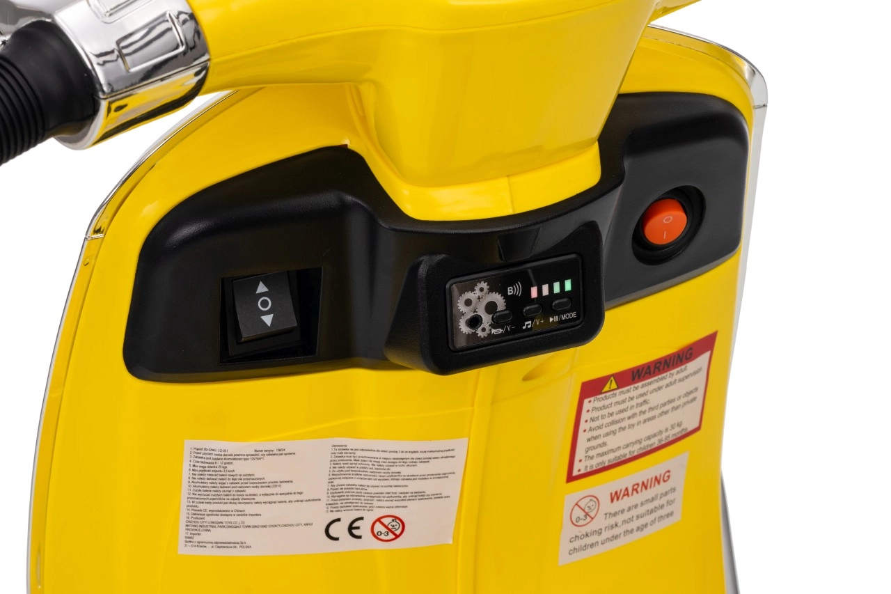Štýlový detský elektrický skúter VESPA ROMA v žiarivej žltej farbe ponúkne deťom bezpečnú zábavu a prvé jazdné zážitky. Vďaka dvom motorom 2×35 W, baterke 12 V 7 Ah, mäkkým EVA kolesám a plynulému rozjazdu je jazda pohodlná a stabilná. Nechýbajú LED svetlá vpredu aj vzadu, audio panel s MP3/Bluetooth/AUX, ukazovateľ nabitia a pohodlné sedlo z ekokože. Skvelá voľba pre malých jazdcov.
