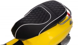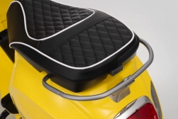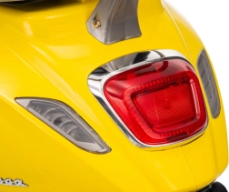 Integrovaný audio panel s MP3, Bluetooth a AUX prehráva obľúbené pesničky, na riadidlách sú tlačidlá zvukov a klaksónu. Jasné LED svetlá vpredu aj vzadu zvyšujú viditeľnosť a pridávajú na autentickom vzhľade skutočnej VESPY.