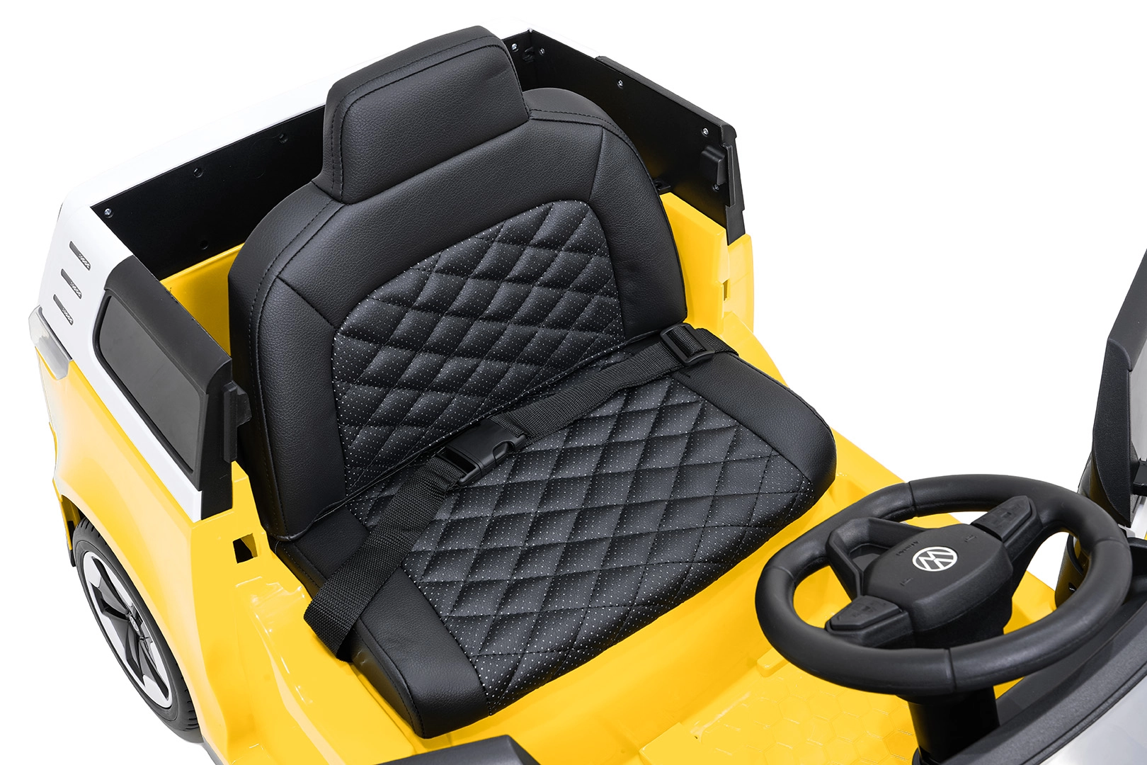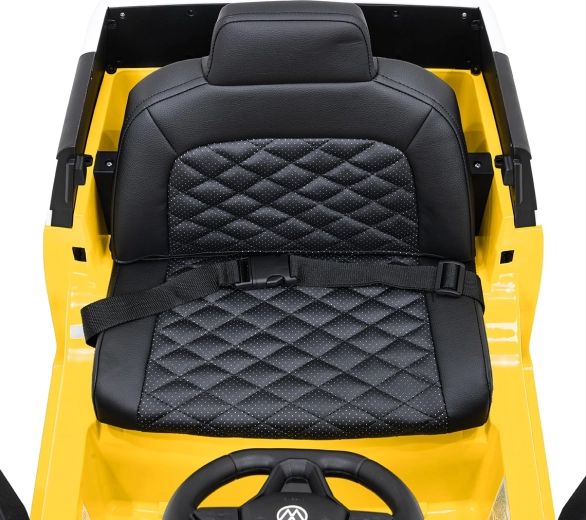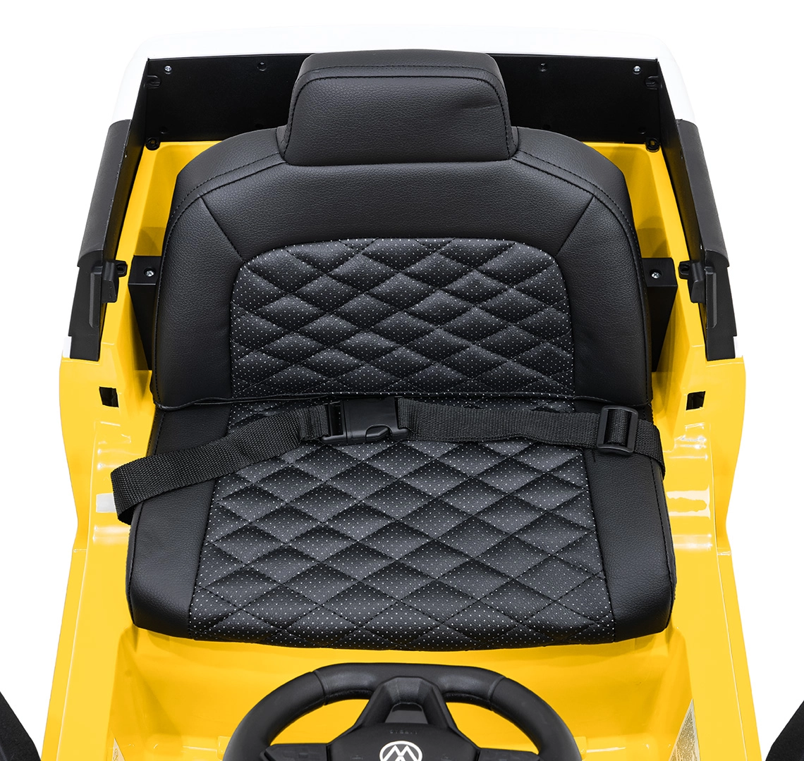 Bezpečie a pohodlie sú na prvom mieste: zmäkčené sedadlo z eko kože s bezpečnostným pásom, diaľkový ovládač 2,4 GHz s 3 rýchlosťami a tlačidlom núdzového zastavenia pre kontrolu dospelých. LED predné svetlá a spínač svetiel podčiarkujú realistický vzhľad, otváracie dvere uľahčujú nastupovanie a zadný úložný priestor pojme drobnosti na cesty.