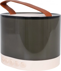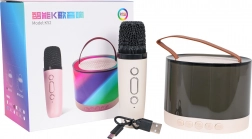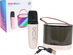 Táto prenosná karaoke sada spája kvalitný bezdrôtový mikrofón a štýlový reproduktor s priesvitným telom a koženkovým uchom pre jednoduché prenášanie. Pokročilé dekódovanie MP3 a DSP redukcia šumu zabezpečujú výrazné basy, čisté výšky a silný, plný zvuk. RGB LED podsvietenie ponúka 5 efektov, ktoré sa synchronizujú s hudbou – krátkym stlačením prepínate režimy, podržaním na 2 s svetlá vypnete.