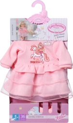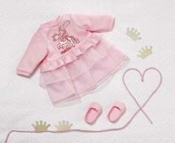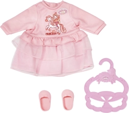 Oblečte svoju Baby Annabell do nádhernej súpravy, ktorá z nej urobí malú princeznú. Hravé ružové šaty s výšivkou princeznej na koni sú doplnené stupňovito riasenou sukňou pre dokonalý vzhľad.