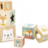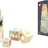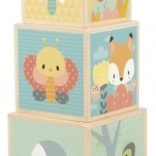 Hladké drevené kocky s roztomilými zvieratkami a jemnými farbami lákajú ku hre a vydržia každodenné používanie.
