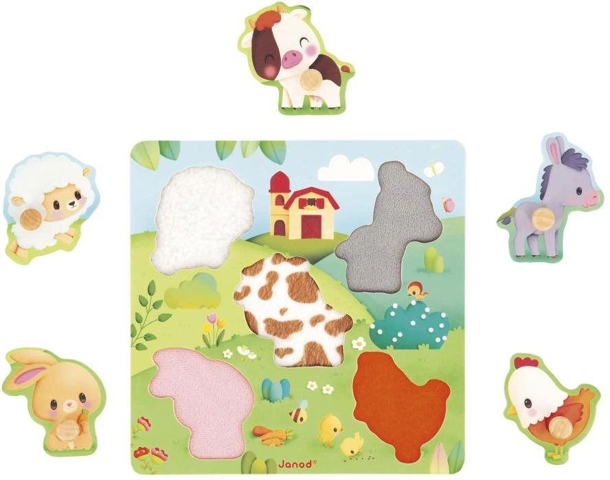 Objavte hravé učenie s drevenou vkladačkou JANOD, ktorá deťom ponúkne dotykový zážitok vďaka ukážkam srsti a kože zvierat. Rozvoj jemnej motoriky, logického myslenia a poznávania tvarov v jednom zábavnom produkte s praktickými úchytmi pre ľahkú manipuláciu.
