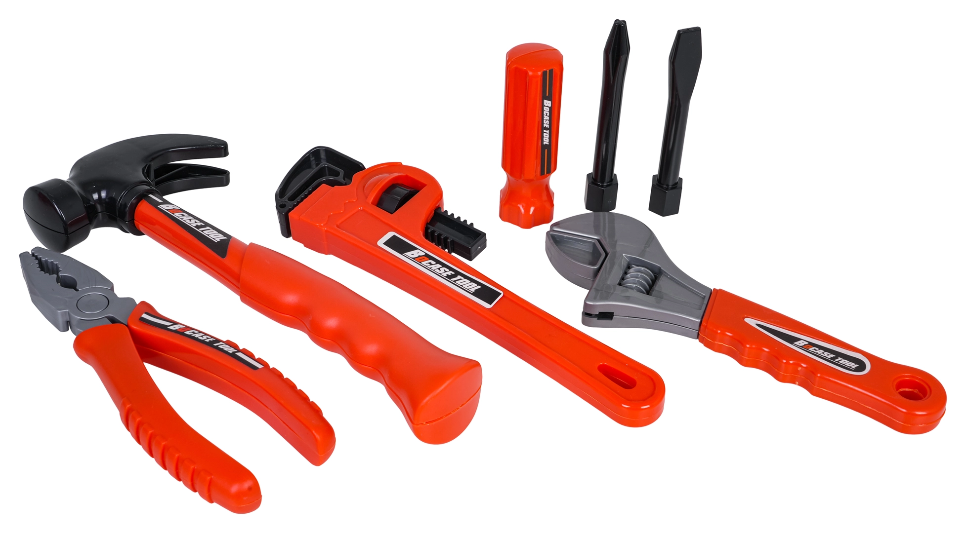 Kladivo, kliešte, francúzsky kľúč, skrutkovač s bitmi aj hasák vyzerajú ako skutočné, ale sú ľahké a bezpečné pre detské ruky.