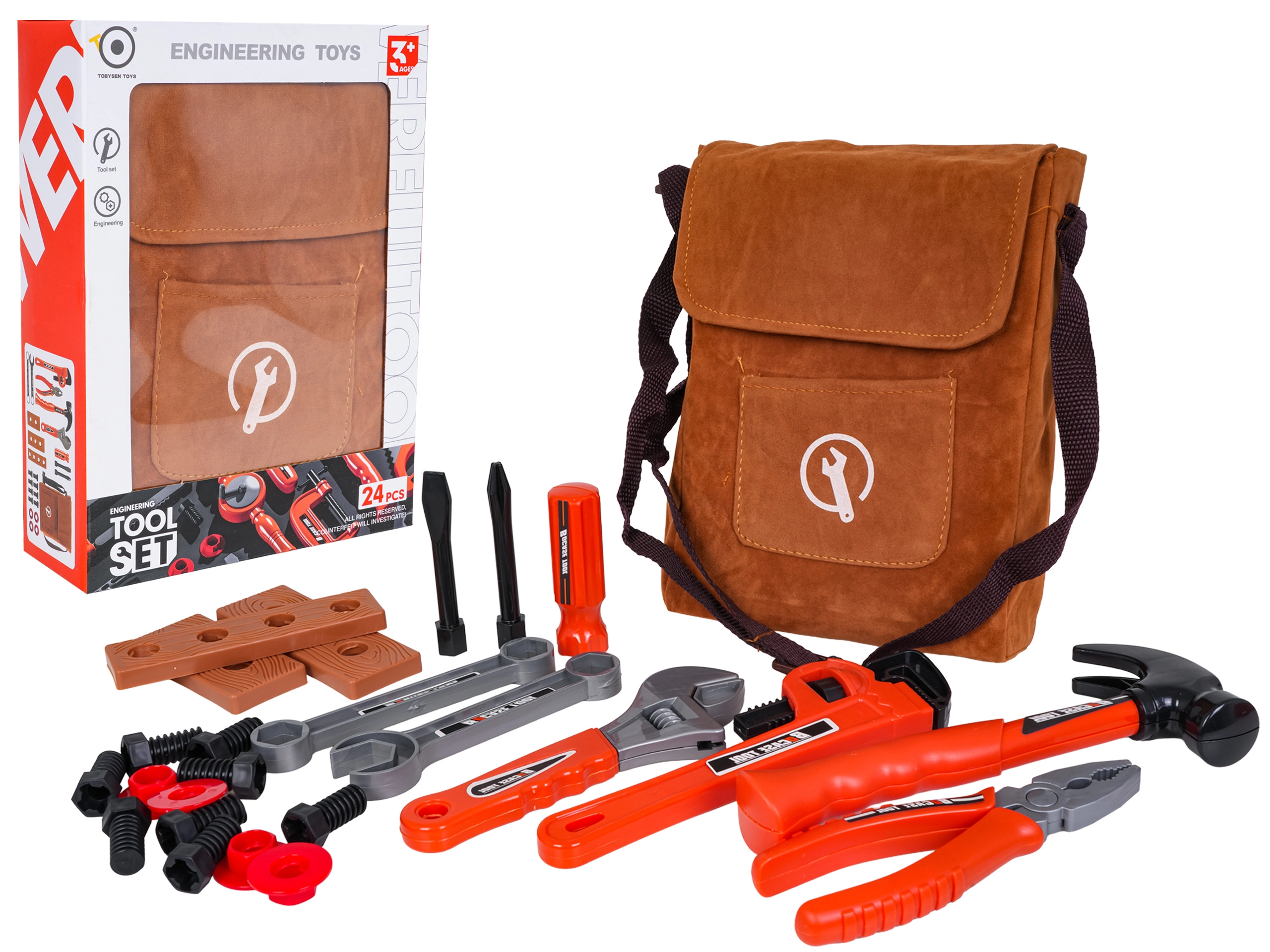 Táto detská sada náradia s brašňou je ideálnou voľbou pre malé kutilky a kutilov. Ľahké a bezpečné plastové náradie verne napodobňuje skutočné nástroje, takže deti môžu trénovať skrutkovanie, meranie aj zatĺkanie a pritom sa učiť trpezlivosti a sústredeniu. Priestranná brašňa s nastaviteľným popruhom udrží všetky súčasti pokope a je skvelá na doma aj na cesty.