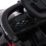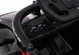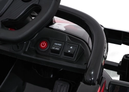 Diaľkový ovládač 2,4 GHz s 3 rýchlosťami a núdzovým Stop. Audio panel s Bluetooth/USB/MP3, zvuky a klaksón na volante.