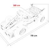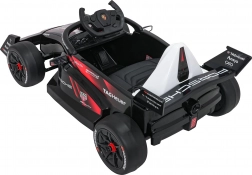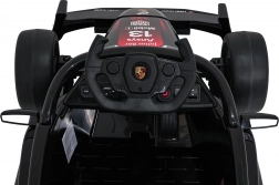 Vstúpte do sveta pretekov s detským elektrickým vozidlom inšpirovaným monopostom PORSCHE Formula E. Silný pohon 2×35 W, batéria 12 V 7 Ah, mäkké EVA kolesá a pohodlné sedadlo z ekokože s bezpečnostnými pásmi zaistia hladkú a bezpečnú jazdu. Ovládanie dopĺňa diaľkový ovládač 2,4 GHz s funkciou Stop, audio panel s Bluetooth/USB/MP3 a prehľadný indikátor nabitia.