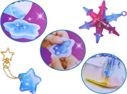 Táto kreatívna sada vám umožní ľahko odlievať krištáľovo čisté ozdoby zo živice v obľúbených tvaroch – hviezda, obláčik či srdce. Zmiešajte zložky A a B v pomere 1:1, pridajte trblietky alebo farebné konfety, nalejte do silikónových foriem a po vytvrdnutí doplňte kovové krúžky, retiazky a koráliky. Vďaka praktickému organizéru budete mať všetky komponenty prehľadne po ruke.