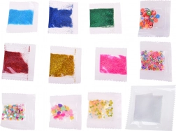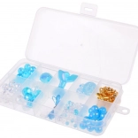- Trblietky, flitre, koráliky v modro-priehľadných tónoch