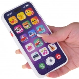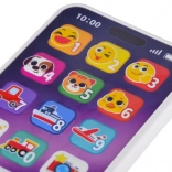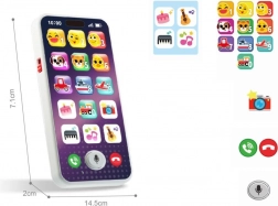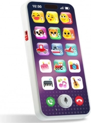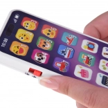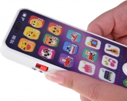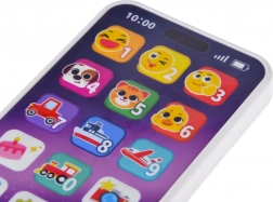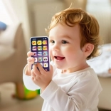 Farebný interaktívny telefón pre najmenších napodobňuje skutočný smartphone a ponúka množstvo zábavy aj učenia. Dieťa sa vďaka veľkým ikonám učí čísla, zvieracie a dopravné zvuky a počúva melódie. Hračka má ľahké a ploché prevedenie, ľahko sa drží v malých ručičkách a má reguláciu hlasitosti pre pohodlnú hru doma aj na cestách.
