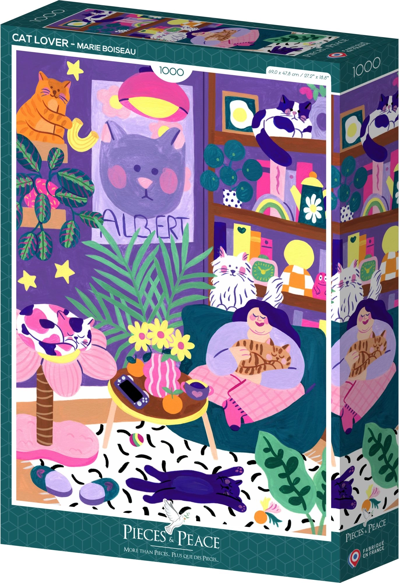 Užite si relax s elegantným puzzle pre všetkých milovníkov mačiek. Obrázok poskladáte z 1000 kvalitných dielikov do formátu cca 47,8 × 69 cm. Ideálne na tréning sústredenia a ako štýlová dekorácia. Vďaka pevnej výrobe sa dieliky presne spoja a zabezpečia plynulé skladanie. Skvelý tip na darček pre každého, kto miluje mačky a kreatívny oddych.