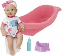 Roztomilá bábika so sadou na kúpanie a prebaľovanie poteší každé dieťa. Súčasťou balenia je vanička s dĺžkou 41 cm, fľaštička a nočník. Bábika má pohyblivú hlavu aj končatiny a pri položen í na chrbát zaviera oči. Vďaka funkcii cikania po napití z fľaštičky si deti užijú realistickú hru na starostlivosť.