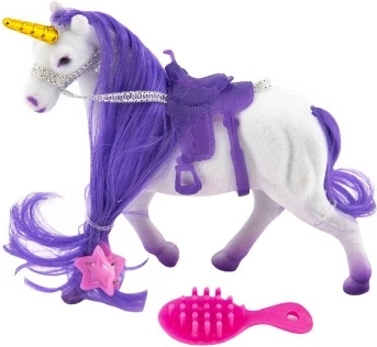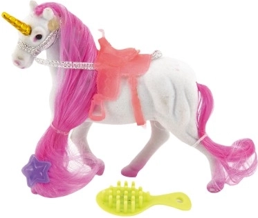 Roztomilý plastový jednorožec s hebkou povrchovou úpravou prináša deťom kúzlo fantázie. Má bohatú česaciu hrivu a chvost, nechýba sedlo a doplnky pre ešte zábavnejšie hranie. Ideálny darček pre milovníkov koní od 3 rokov.