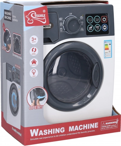 Táto detská práčka prináša autentický zážitok z prania v bezpečnej a zábavnej podobe. Stačí stlačiť tlačidlo on/off, zvoliť program a tlačidlom go/stop spustiť pranie. Vďaka efektom napodobňuje skutočnú prevádzku práčky a rozvíja detskú fantáziu aj motorické zručnosti.