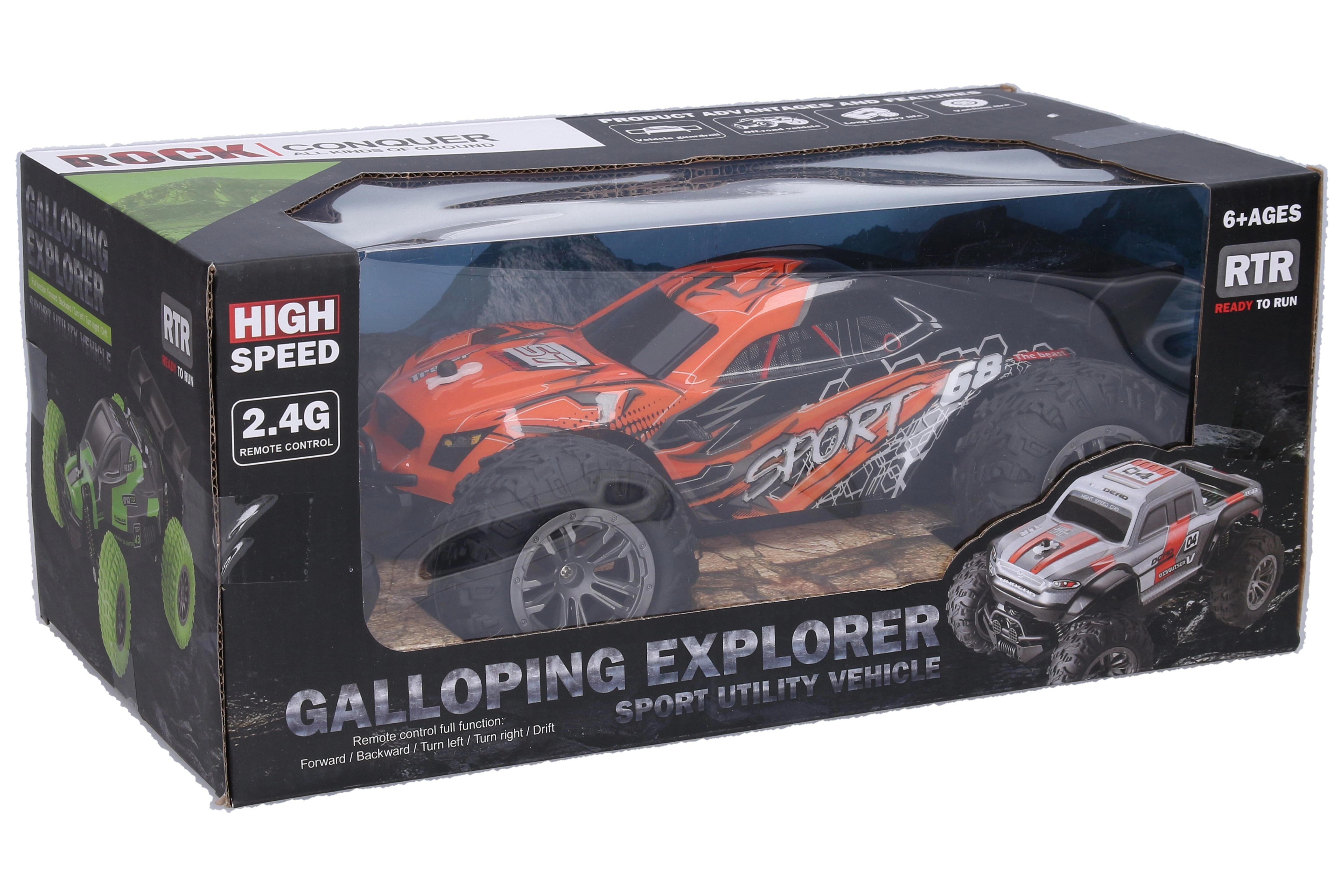 Táto kompaktná RC bugina s rozmermi 23 × 17 × 9 cm je ideálna na jazdu v interiéri aj vonku. Stabilný prenos na 2,4 GHz umožňuje súčasnú jazdu viacerých modelov bez vzájomného rušenia, zatiaľ čo pištoľový ovládač zabezpečí presné riadenie a pohodlný úchop.