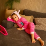 Roztomilá kapucňa s uškami a tvárou postavičky dodá overalu hravý vzhľad a deti si ju zamilujú.