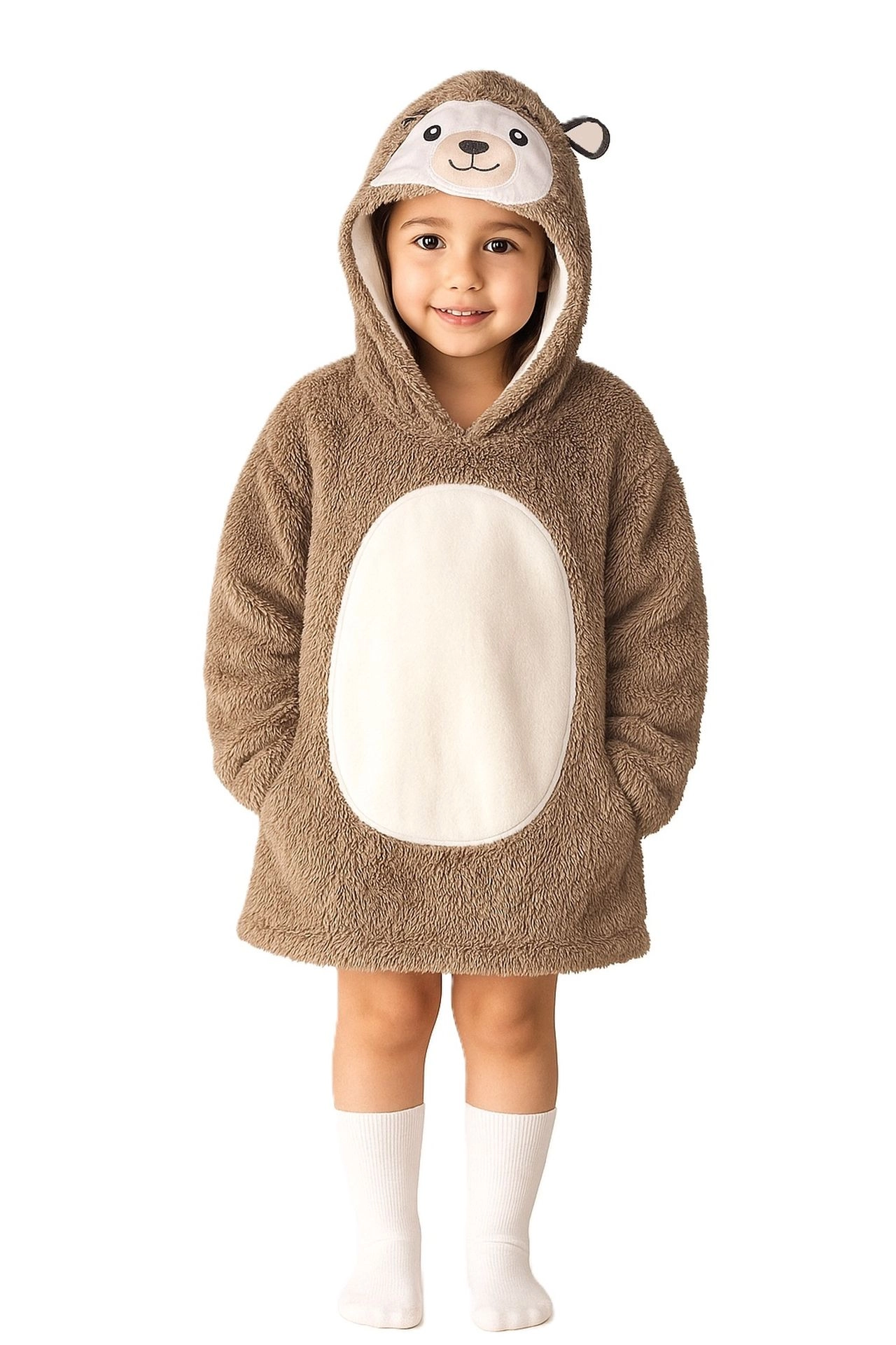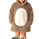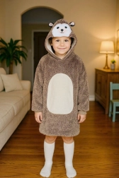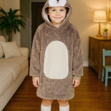 Praktická veľká kapucňa so zvieracou tvárou zahreje hlavu a uši, zatiaľ čo priestranná predná kapsa udrží ruky v teple a pojme aj drobnosti. Dĺžka po kolená a voľný oversize strih zaistia, že deťom bude príjemne teplo, nech sú kdekoľvek.