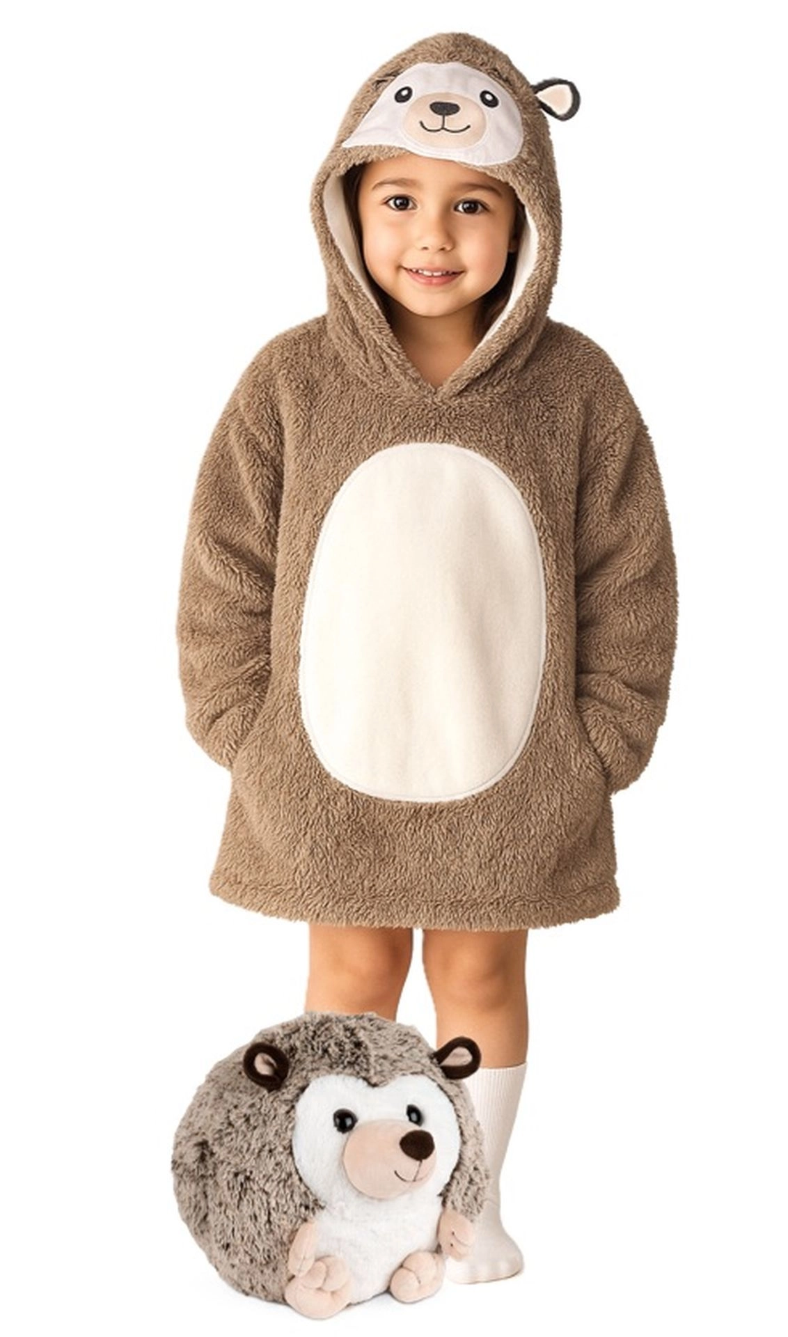 Táto mikinová deka s kapucňou v ježkovom dizajne poteší každé dieťa svojou hebkosťou a nadýchanou štruktúrou. Vďaka kombinácii flanelu a sherpa fleecu poskytuje maximálne teplo a pohodlie bez obmedzenia pohybu. Skvele sa hodí na domáce leňošenie, sledovanie TV aj vonkajšie aktivity.