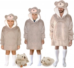 Praktické detaily potešia: veľká medvedia kapucňa s uškami, obrie klokanie vrecko na zahriatie rúk a miesto na drobnosti, odolné materiály a jednoduchá údržba – stačí prať na 30 °C. Skvele sa hodí aj na vonkajšie posedenie, stanovanie alebo do chladnejších miestností.