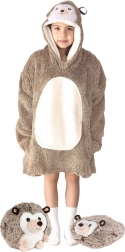 Táto hrejivá mikinová deka COZY NOXXIEZ v rozkošnom ježkovom štýle spája pohodlie deky a praktickosť mikiny. Vnútro z nadýchaného sherpa fleecu a hebká flanelová vrstva zvonka zaistia, že deťom bude teplo pri sledovaní TV, hraní aj oddychu.