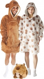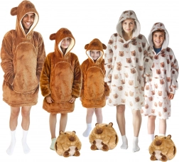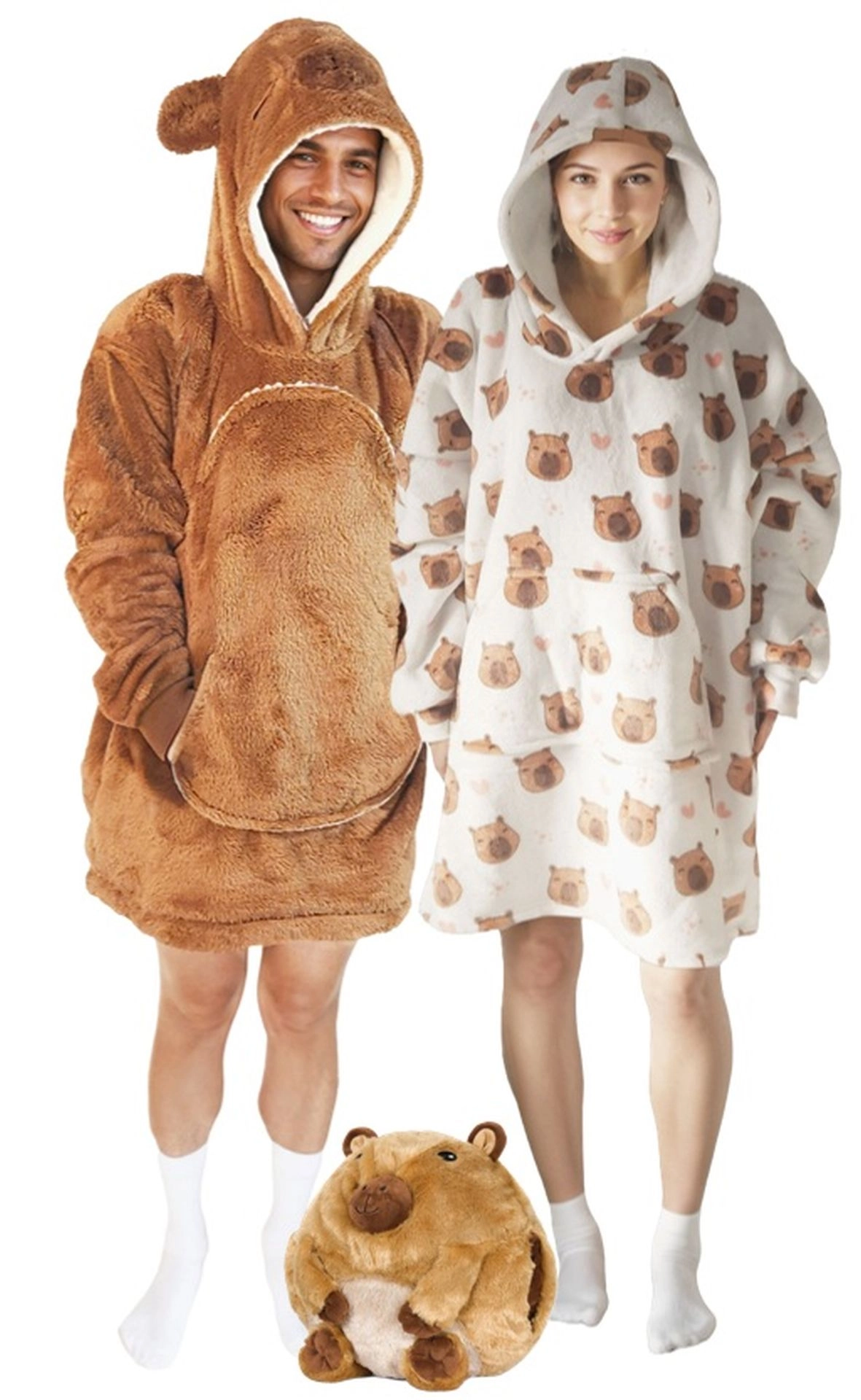 Táto mikinová deka COZY NOXXIEZ s motívom kapybary je ideálna na gaučing, čítanie, prácu na PC, stanovanie aj posedenie na záhrade v chladnejšom počasí. Oversize strih neobmedzuje v pohybe a zahreje od pliec až po kolená. Je to skvelý darček pre ženy aj mužov, ktorý poteší humorným dizajnom a skutočnou funkčnosťou.