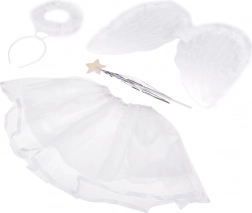 Set je pripravený na okamžité použitie: krídla sa upevňujú pomocou pružných gumičiek, auréola drží na pohodlnej čelenke, tutu sukňa má elastický pás pre ľahké obliekanie a palička s hviezdou dodá detskej fantázii iskru.