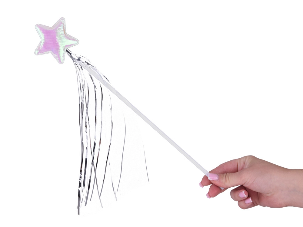 Mäkká, nadýchaná auréola na čelenke doplní nebeský vzhľad. Palička s trblietavou hviezdou a striebornými strapcami podporí fantáziu pri hre a vystúpeniach.