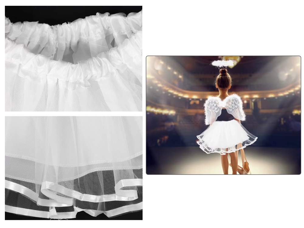 Viacvrstvová tylová sukňa je ľahká a vzdušná. Elastický pás sa ľahko prispôsobí – približne 18–30 cm v obvode, dĺžka sukne cca 32 cm. Perfektná pre voľný pohyb a celodenné pohodlie.