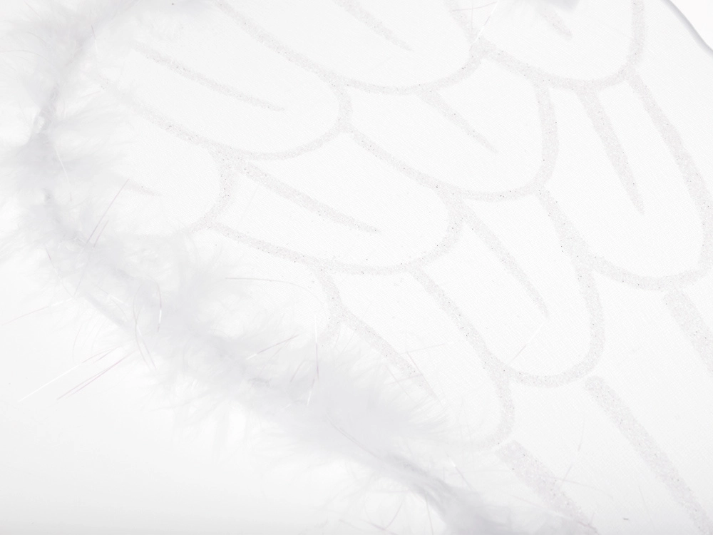Dekoratívne krídla s pierkovým lemom sú ľahké a držia na pružných gumičkách. Rozmery približne 42 cm na šírku a 33 cm na výšku – ľahko sedia a krásne vyniknú na fotografiách.