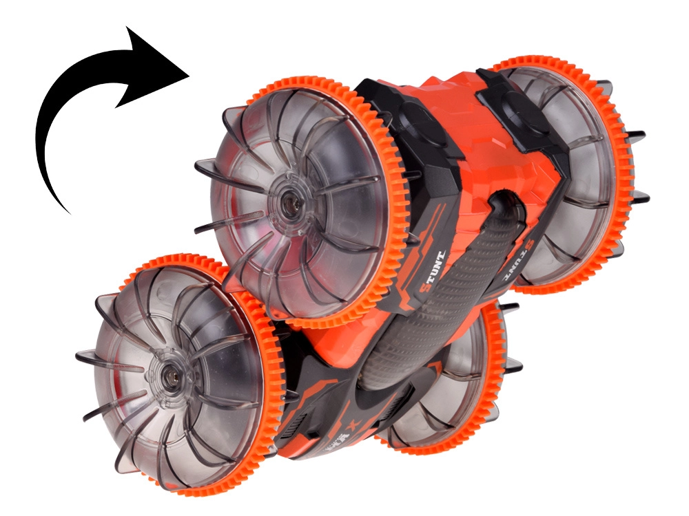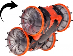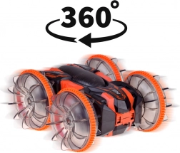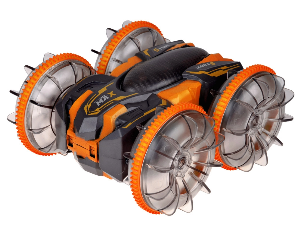 Objavte akčnú jazdu s amfibiálnym kaskadérskym RC autom, ktoré si poradí s trávou, pieskom, dlažbou aj vodnou hladinou. Veľké priehľadné kolesá s výrazným dezénom a LED osvetlením dodajú každej jazde show efekt a istotu priľnavosti. Vďaka otočkám o 360° auto pokračuje v jazde aj po prevrátení na druhú stranu.