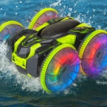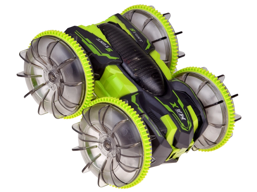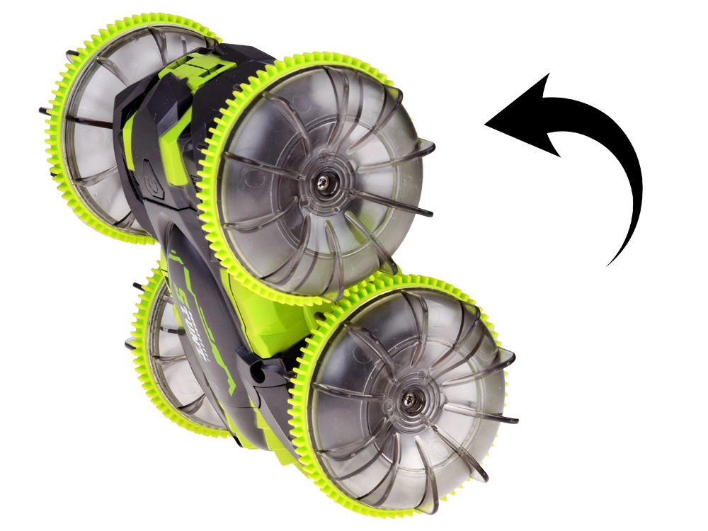Objavte adrenalín s amfibiálnym kaskadérskym RC autom, ktoré si poradí s trávou, kobercom, dlažbou aj vodnou hladinou. Veľké transparentné kolesá s výrazným dezénom a LED podsvietením zabezpečujú výbornú priľnavosť a efektný vzhľad pri jazde aj po zotmení. Vďaka otočke 360° pokračuje v jazde aj po prevrátení.
