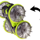 Veľké transparentné kolesá s LED osvetlením zvládajú otočky, premety a rotácie, auto pokračuje v jazde aj po prevrátení.