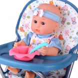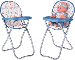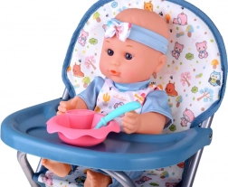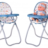Stabilná rozkladacia stolička s táckou a miestom pre misku a príbory. Podporuje realistickú hru kŕmenia a stolovania s bábikou.