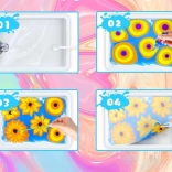 Sada na maľovanie na vode Ebru vám umožní prenášať farebné vzory z hladiny zahustenej vody priamo na papier. Vďaka praktickému príslušenstvu a jasnému postupu je tvorenie intuitívne a zábavné – skvelé na rodinné popoludnie, školské projekty aj relax po práci.