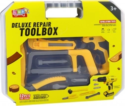Súčasťou sady sú aj kladivo, píla, kliešte, skrutkovač a kľúč, takže malí majstri môžu trénovať koordináciu, trpezlivosť a kreatívne myslenie. Pevný kufrík udrží všetky diely pokope a uľahčí ukladanie aj prenášanie doma aj na cestách.