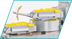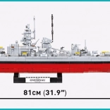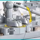 Loď ponúka množstvo funkčných detailov: otáčacie delové veže s eleváciou hlavní, pohyblivé lodné skrutky a kormidlá, realistickú palubu a nadstavby. V balení nechýba elegantný čierny stojan a biela menovka s názvom plavidla. Intuitívny návod s prehľadnými ikonami uľahčí stavbu aj menej skúseným staviteľom.