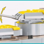 Otočné delové veže s nastaviteľnými hlavňami, pohyblivé skrutky a kormidlá dodávajú modelu dynamiku a interaktivitu.
