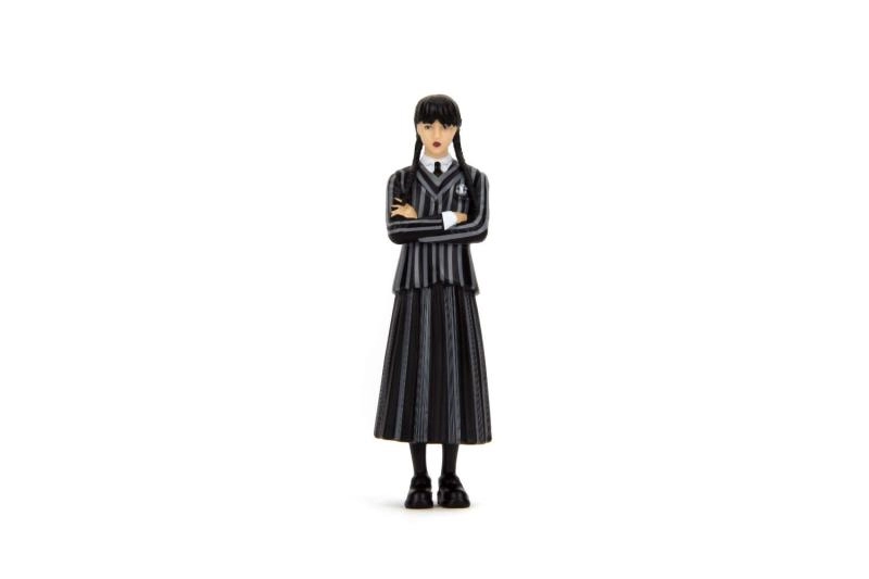 Vďaka otváracím dverám, kapotám a voľne sa otáčajúcim kolesám je model ideálny na vystavenie aj nenáročné prehrávanie scén. Priložená figúrka Wednesday Addamsovej dodáva setu osobitosť a tematický nádych.