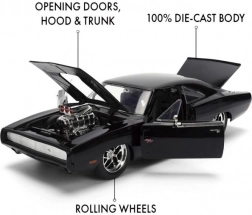 Ikonický zberateľský model 1970 DODGE CHARGER z filmu Rýchlo a zbesilo v mierke 1:24 poteší fanúšikov muscle carov aj filmovej série. Ponúka kovové spracovanie, otváracie dvere, kapotu aj kufor a realistické detaily vrátane výrazného kompresora na kapote. Dĺžka modelu je približne 21 cm.