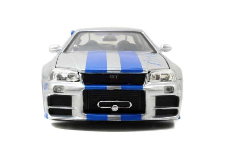 Pridajte do svojej vitríny legendu japonskej scény – detailne spracovaný Nissan Skyline GT‑R R34 inšpirovaný filmom Rýchlo a zbesilo. Model kombinuje robustné kovové telo s precíznymi plastovými doplnkami, modrými závodnými pruhmi a verným bodykitom.