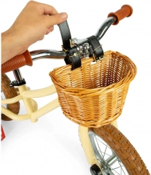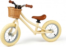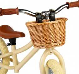 Elegantné detské odrážadlo v krémovej farbe pomáha deťom prirodzene rozvíjať rovnováhu a istotu pri jazde. Vďaka robustnému kovovému rámu, nastaviteľnému sedlu a praktickému prútenému košíku je ideálnou voľbou pre prvé krôčiky k jazde na bicykli. Odrážadlo má ľahký bezšľapkový dizajn, pneumatické krémové plášte, výškovo nastaviteľné sedlo a pružné gumové rukoväte pre bezpečný úchop.