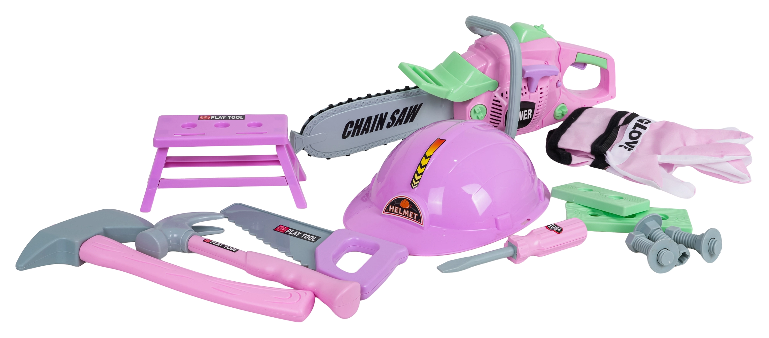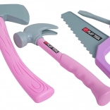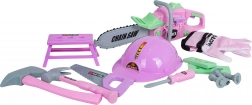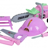 Hračka Ružová sada náradia pre deti od 3 rokov poteší malých kutilov bohatou výbavou. Obsahuje motorovú pílu so zvukmi, ochrannú helmu a rukavice, kladivo, pílu, skrutkovač, skrutky aj stolík – mini dielňu. Vyrobené z kvalitného plastu, bezpečné a ľahké pre detské ruky.