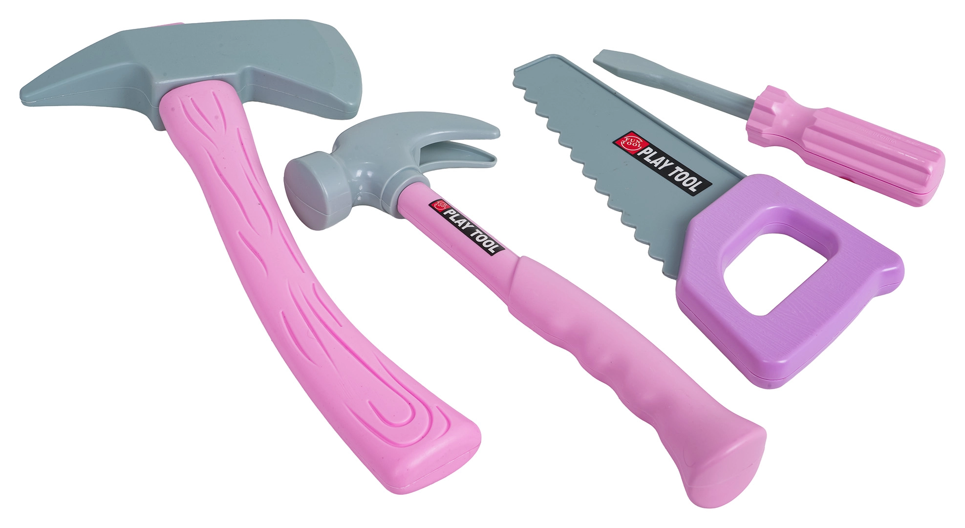 Súčasťou sady je ružová helma a mäkké rukavice pre bezpečnejšie a realistickejšie hranie malých opravárov.