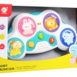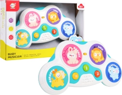 Táto hudobná hračka s dotykovými plochami so zvieratkami (králik, lev, žirafa a slon) motivuje deti k objavovaniu zvukov a rytmu. Jemné svetelné efekty po celej dĺžke panelu a pestré farby podporujú vizuálne vnímanie, zatiaľ čo zvuky a melódie rozvíjajú sluch aj cit pre rytmus.